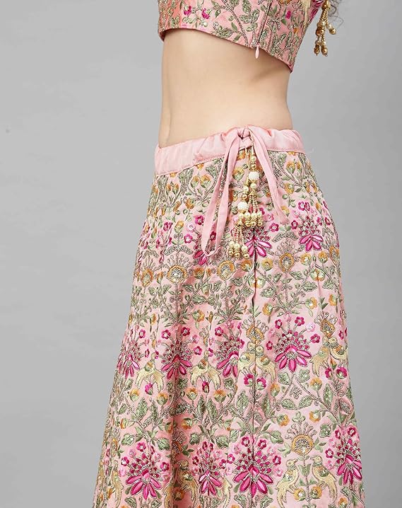 Luxurious Silk Fabric: Crafted from high-quality silk that offers a rich texture and elegant drape. Intricate Thread Embroidery: Features detailed threadwork for a traditional yet contemporary ethnic look. Semi-Stitched Design: Lehenga is semi-stitched for adjustable fitting; blouse is unstitched for customized tailoring. Occasion Ready: Perfect for weddings, festivals, receptions, sangeet, and other cultural celebrations.
