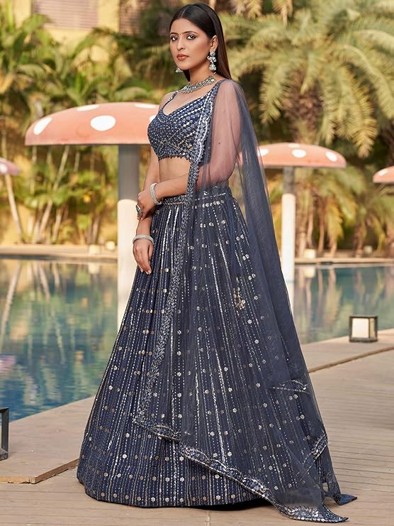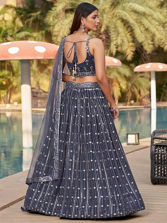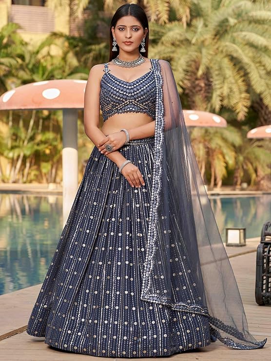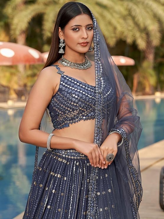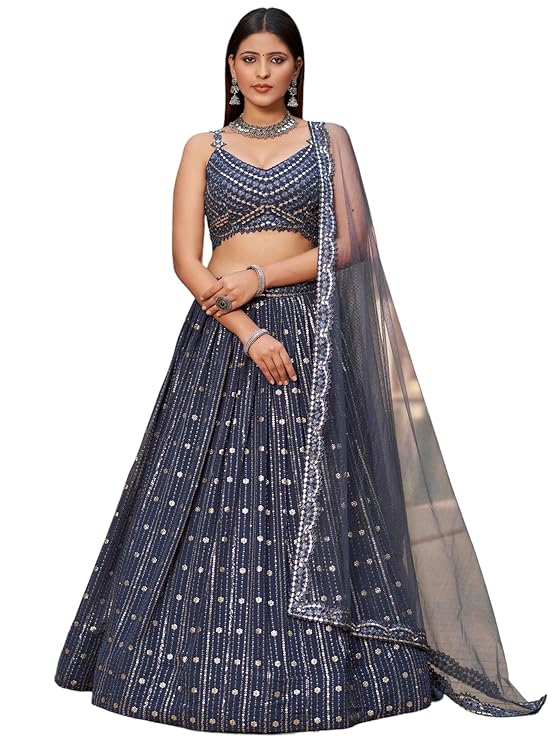 StyleZeel Clothing Women’s Sequins with Mirror Paper Embroidery Georgette Lehenga Choli Latest Design