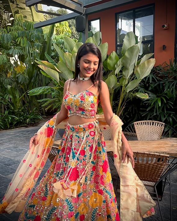 Package Contains: 1 Semi-Stitched Lehenga with Dupatta and Unstitched Choli Lehenga Fabric: Georgette; Lehenga Work: Sequence And Thread Embroidery work| Lehenga Stiching type : Semistich Upto 44 With Cancan Pata (Tulle)Thread and Sequin Embroidery; Lehenga Stiching type: Semistich; Lehenga Length (Inches): 42 Inches; Lehenga Flair (Meter) - 3.5 Meter; Lining Inner Fabric - Crepe Choli Fabric: Georgette; Choli Work: Thread and Sequin Embroidery; Choli Size : Unstich Upto 44 Inches; Blouse Length (Meter) : 1 mtr Dupatta Fabric: Georgette; Dupatta Work: Thread And Sequin Embroidery; Dupatta Length (Meter) - 2.25 mtr It Gives Designer Rich Look To Your Personality.