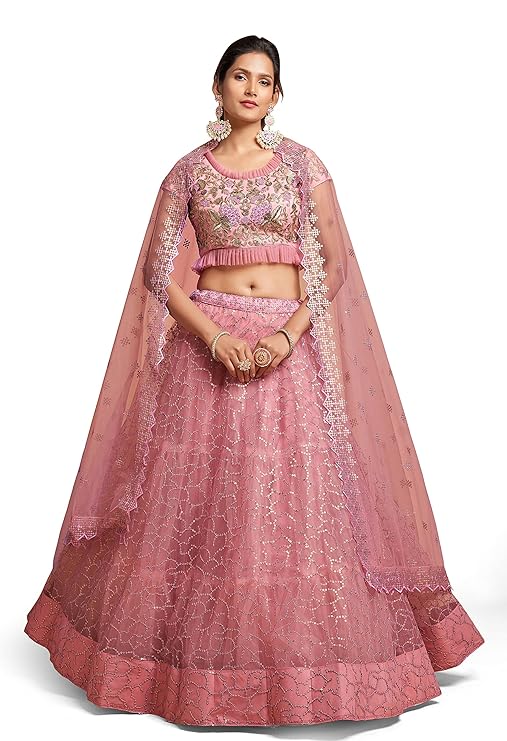 Lehenga Fabric: Net; Blouse Fabric: Net; Dupatta Fabric: Net; Inner: Santoon With Cancan(Tulle) Layered Net Lehenga Work: Zari, Thread, Dori & Sequins Embroidery; Blouse Work: Thread, Dori, Zari & Glitter Sequins Embroidery; Dupatta Work: Thread, Zari, Dori & Sequins Embroidery Measurements: Lehenga(Semi-Stitched) Flair : 3.50 Mtr, Waist-43", Height-42"; Blouse(Unstitched) Size: Up To 44"; Dupatta Length: 2.25 Mtr Package Contains: 1 Semi-Stitched Lehenga With Dupatta And Unstitched Blouse Wash Care: Dry Clean Only